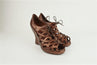 Bottega Veneta Lace-Up Booties Copper Snakeskin Size 39 Peep Toe Platform Wedge
