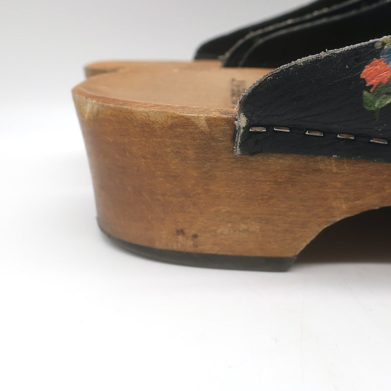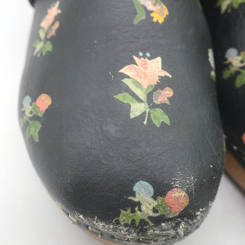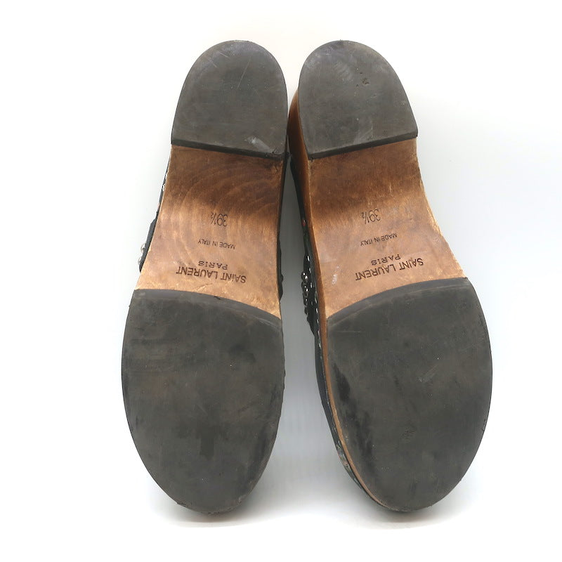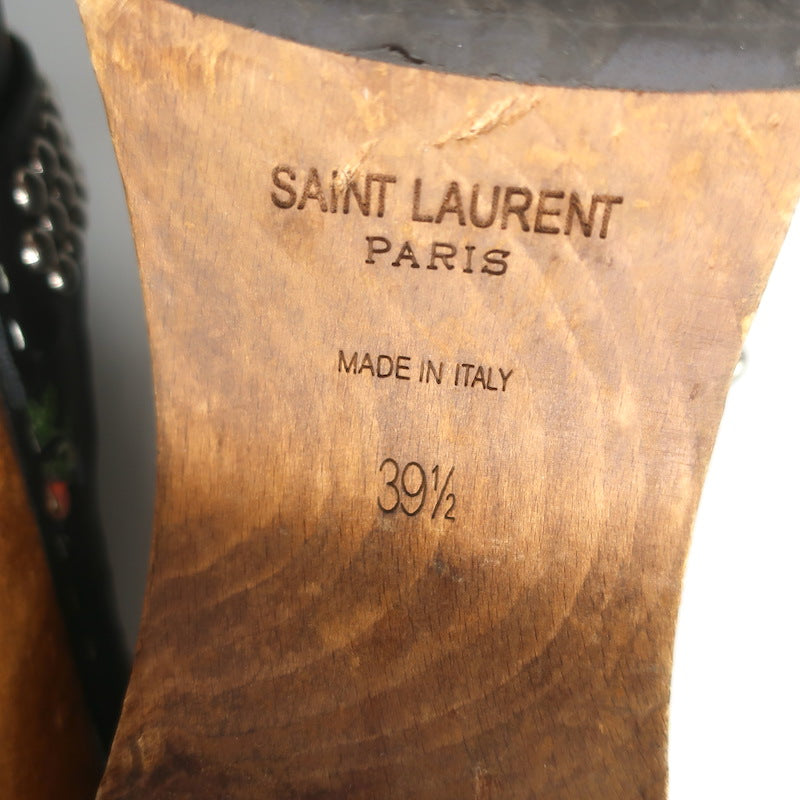 Saint Laurent Floral Print Studded Clogs Black Leather Size 39.5