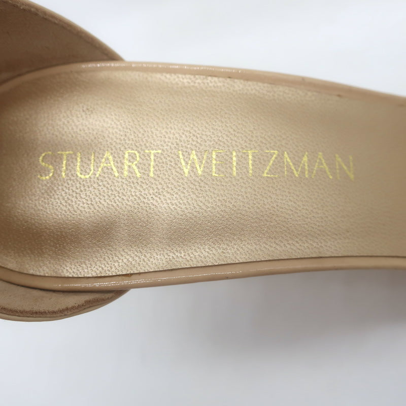 Stuart Weitzman Nudist Ankle Strap Sandals Beige Patent Leather Size 8 NEW
