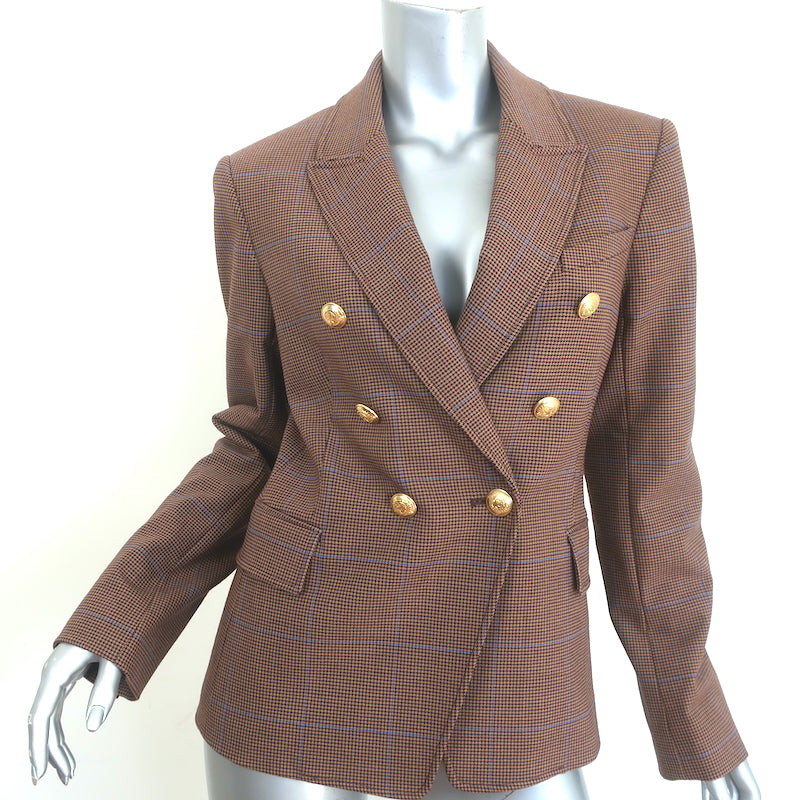 A.L.C. Chelsea Plaid Double Breasted Blazer Brown Stretch Wool Size 6