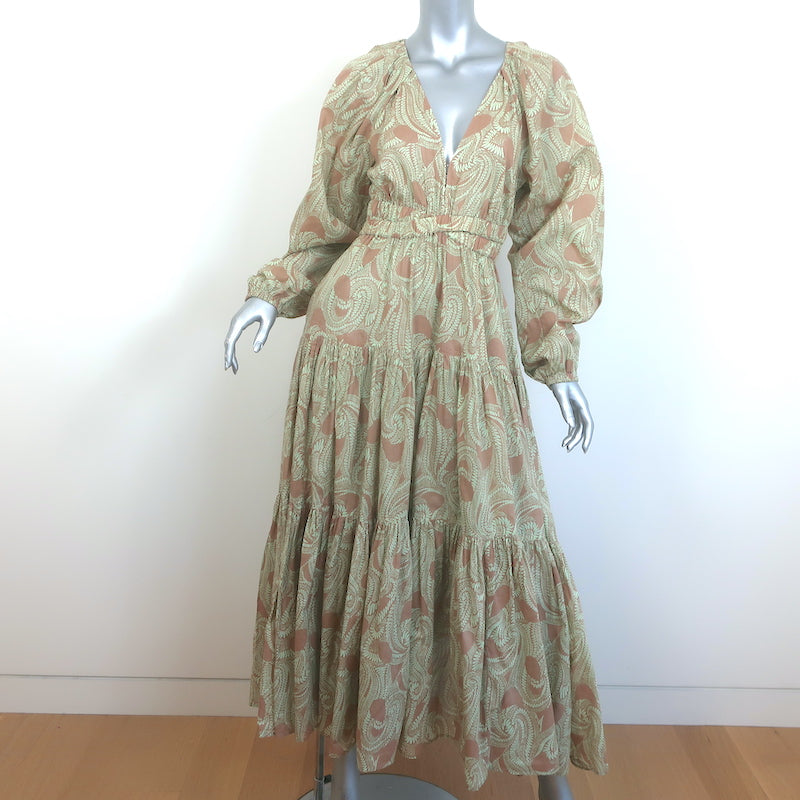 A.L.C. Iman Tiered Maxi Dress Beige/Pastel Green Paisley Print Cotton Size 4
