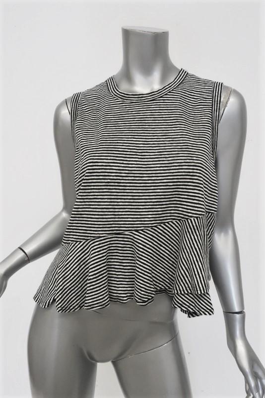 A.L.C. Tank Braxton Black/White Striped Linen Size Small Sleeveless Ruffle Top -