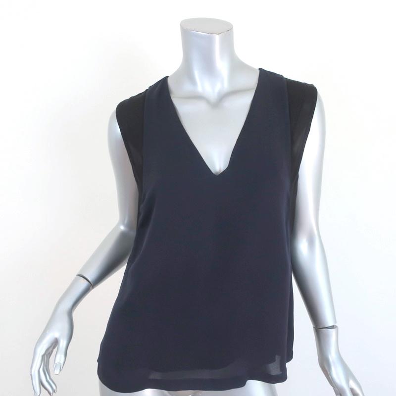 A.L.C. Top Navy & Black Layered Silk Size Small Sleeveless V-Neck Blouse