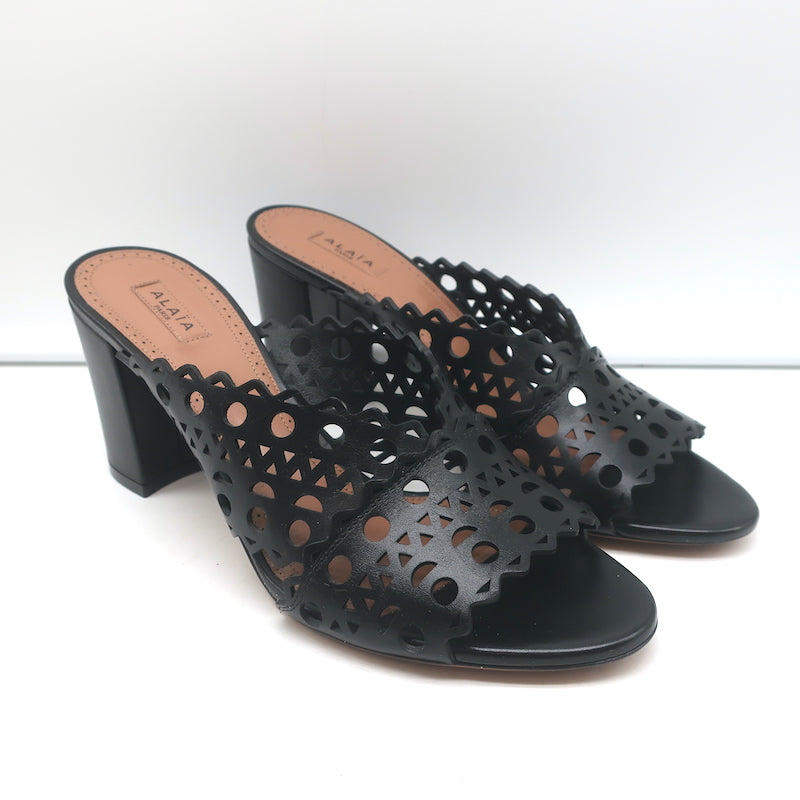 Alaia Laser Cut Leather Mules Black Size 39 Open Toe Heels