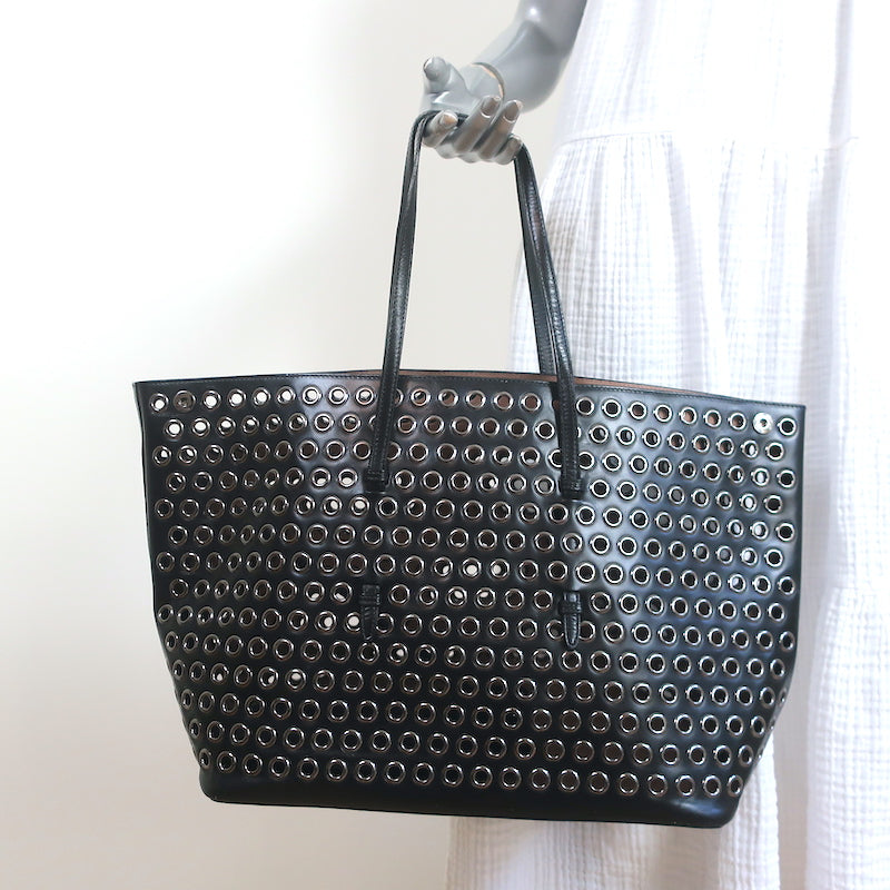 Alaia Mina Grommet Tote Black Leather Large Shoulder Bag
