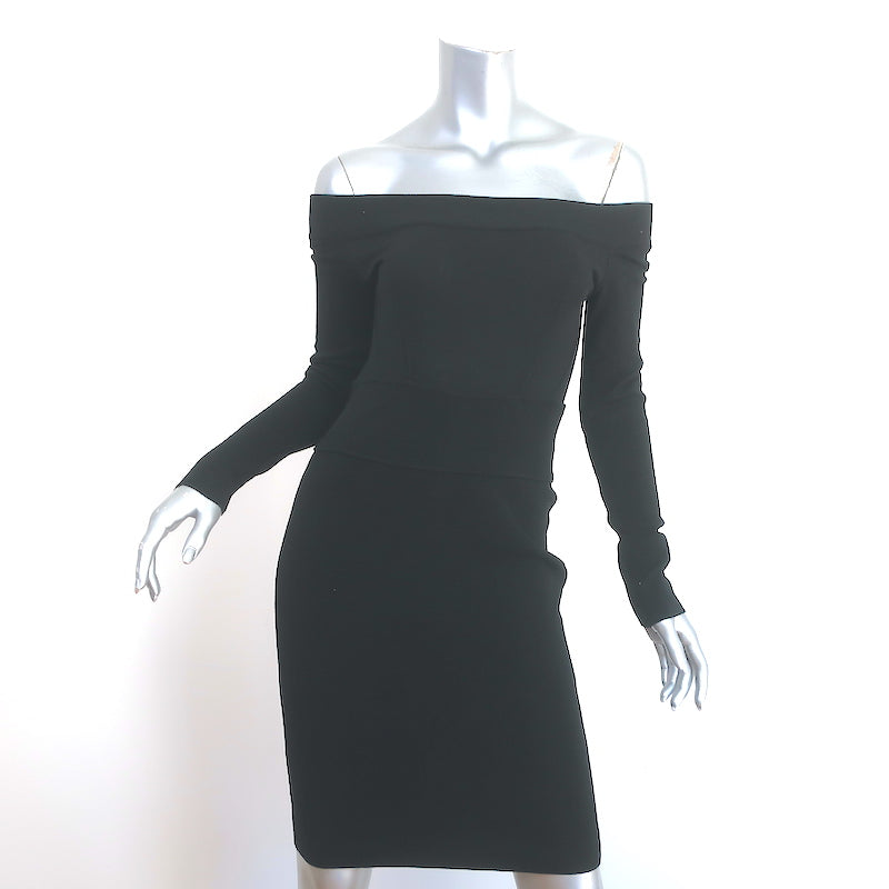 Alaia Off the Shoulder Long Sleeve Dress Black Knit Size Small