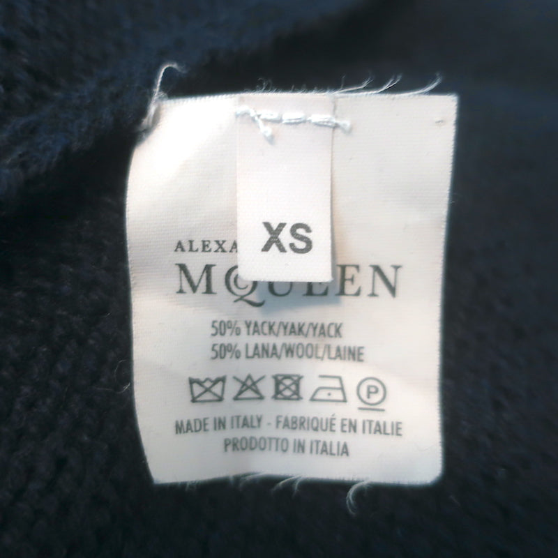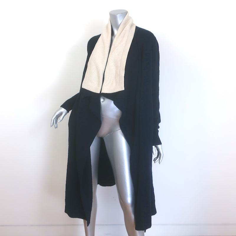 Alexander McQueen Bicolor Draped Cardigan Navy/Cream Yak-Wool Size Extra Small