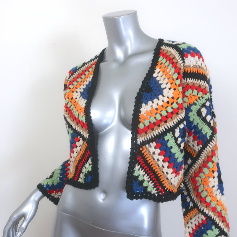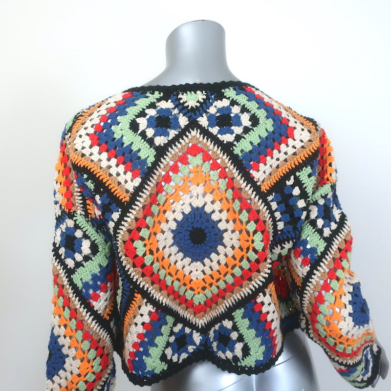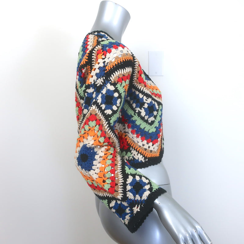 Alice + Olivia Anderson Cropped Crochet Cardigan Multicolor Cotton Size Small