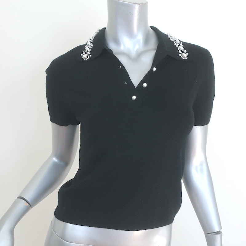 Alice + Olivia Meda Crystal & Faux Pearl-Embellished Polo Black Size Medium Measurements