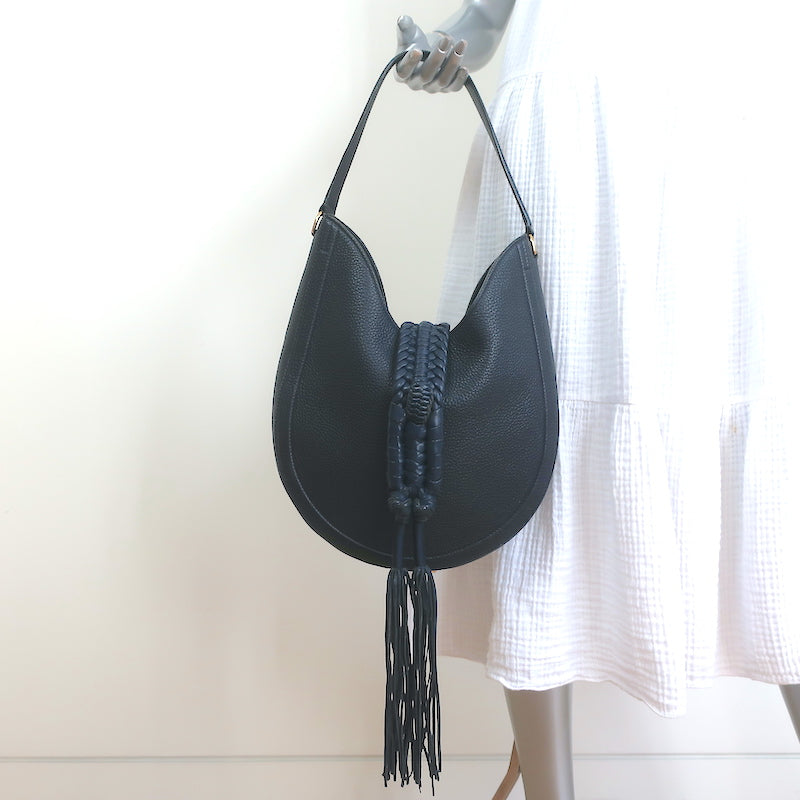 Pre-loved. Good condition. A few small scratches in leather. Some wear on braiding. Studs on base are tarnished. A couple of smudges on lining. Does NOT come with dustbag.