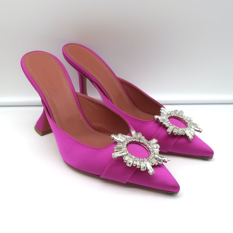 Amina Muaddi Begum Crystal-Embellished Mules Magenta Satin Size 39 Measurements