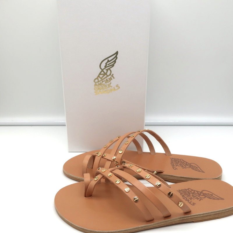 Ancient Greek Sandals Apli Amalia Nails Slide Sandals Beige Leather Size 38 NEW