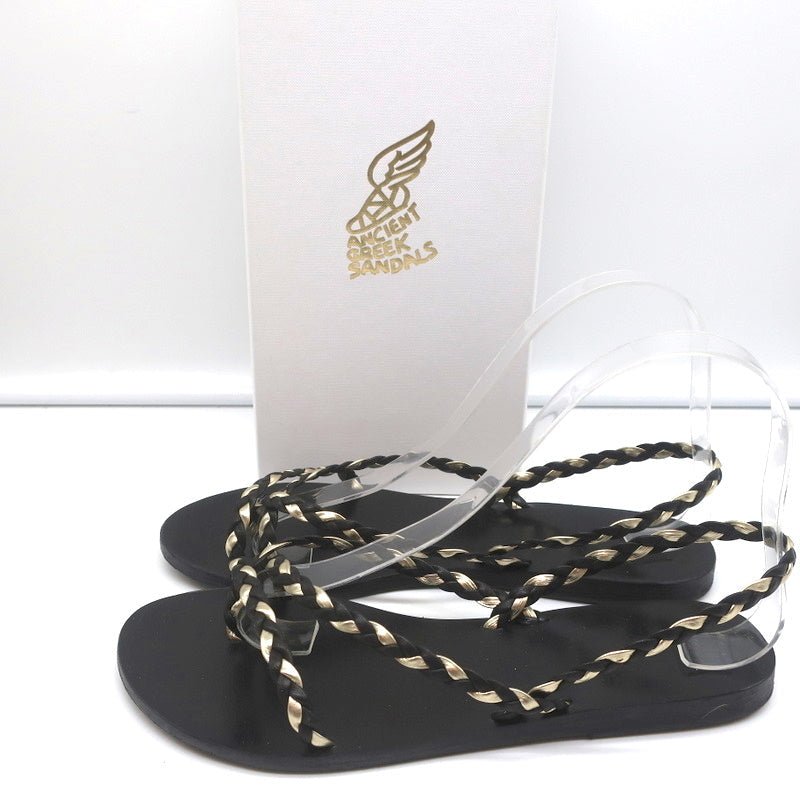 Ancient Greek Sandals Yianna Slingback Sandal Black/Gold Braided Leather Size 38