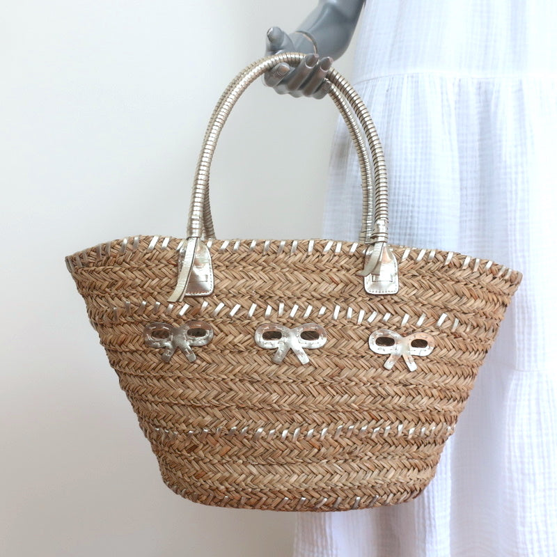 Anya Hindmarch Beach Large Basket Tote Gold Leather-Trim Raffia Shoulder Bag