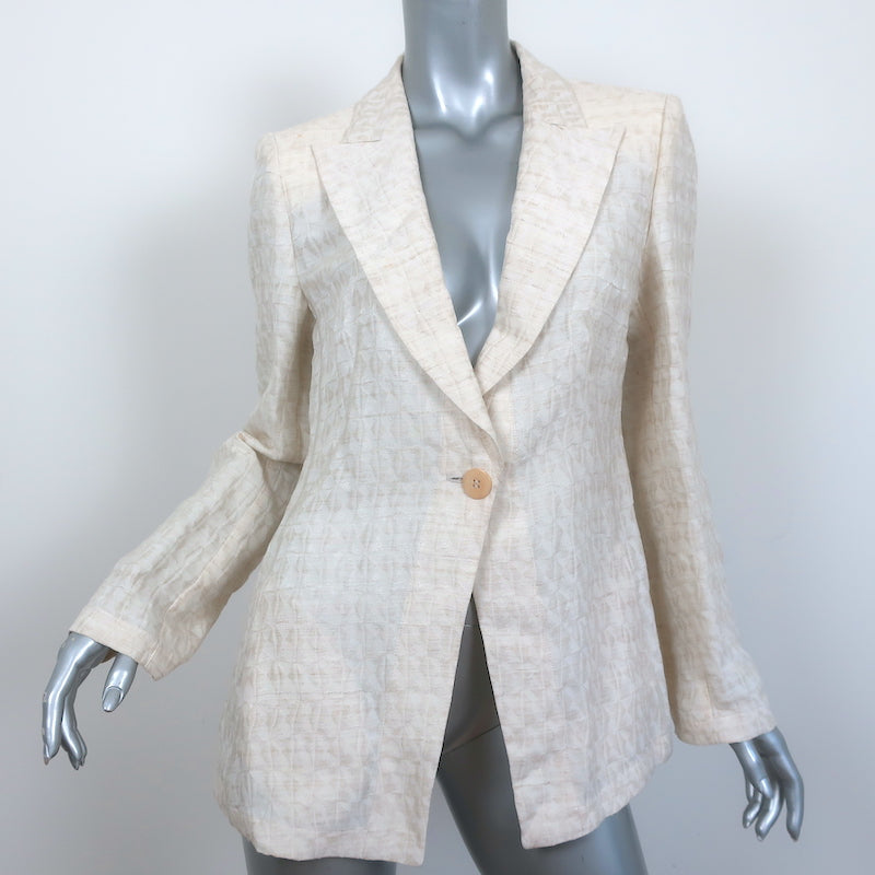 Pre-loved. Good condition. No flaws, small brown smudge on right lapel and one on upper right sleeve may come out with cleaning.