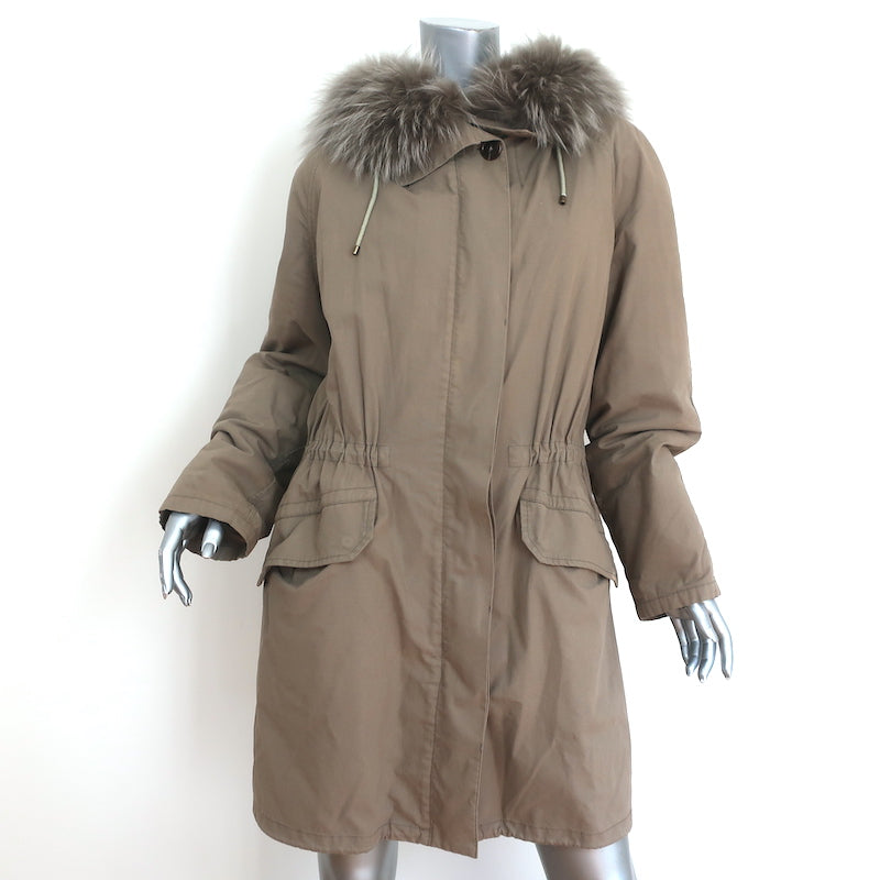 ARMY Yves Salomon Fur-Lined Parka Olive Brown Cotton Size 40 Hooded Jacket Measurements