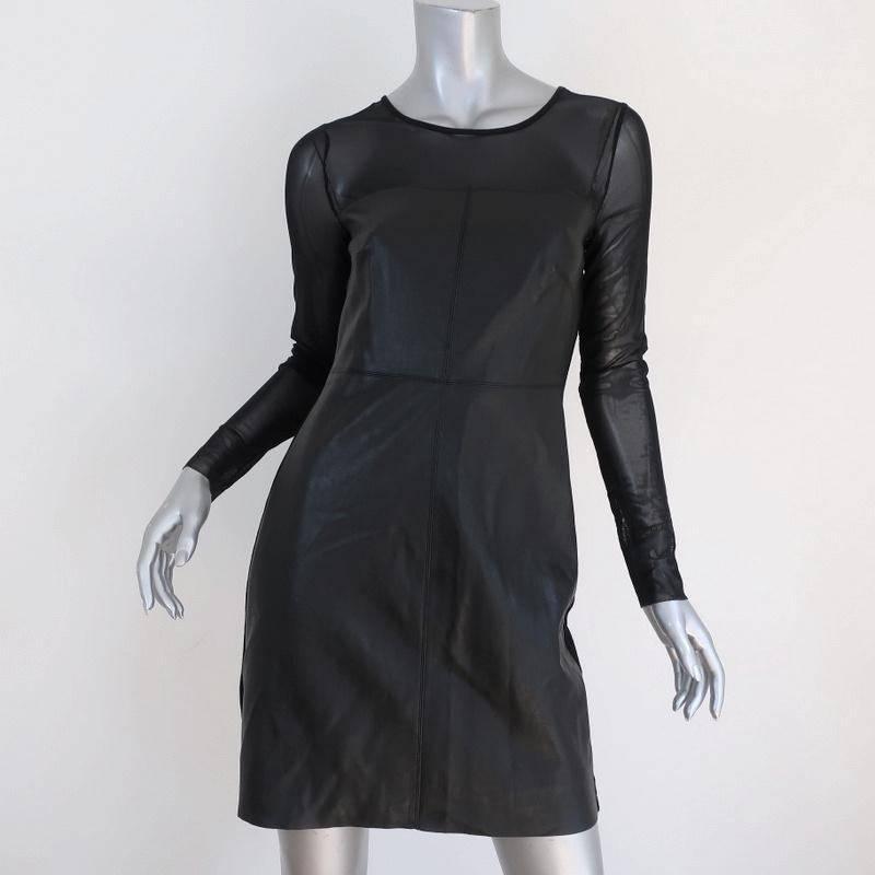 Bailey 44 Dress Black Faux Leather & Mesh Size Small Long Sleeve Mini
