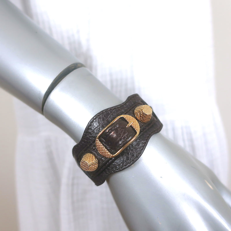 Balenciaga Arena Giant Bracelet Dark Brown Leather Gold Hardware