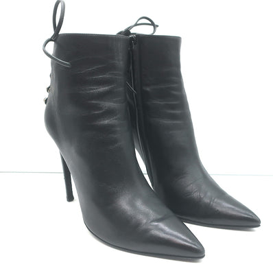 Balenciaga Giant Stud Lace-Up Back Ankle Boots Black Leather Size 40