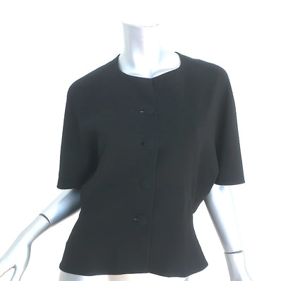 Balenciaga Button Front Blouse Black Crepe Size 40 Short Sleeve Top
