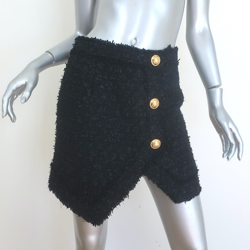 Balmain Button-Embellished Asymmetric Tweed Mini Skirt Black Size 34