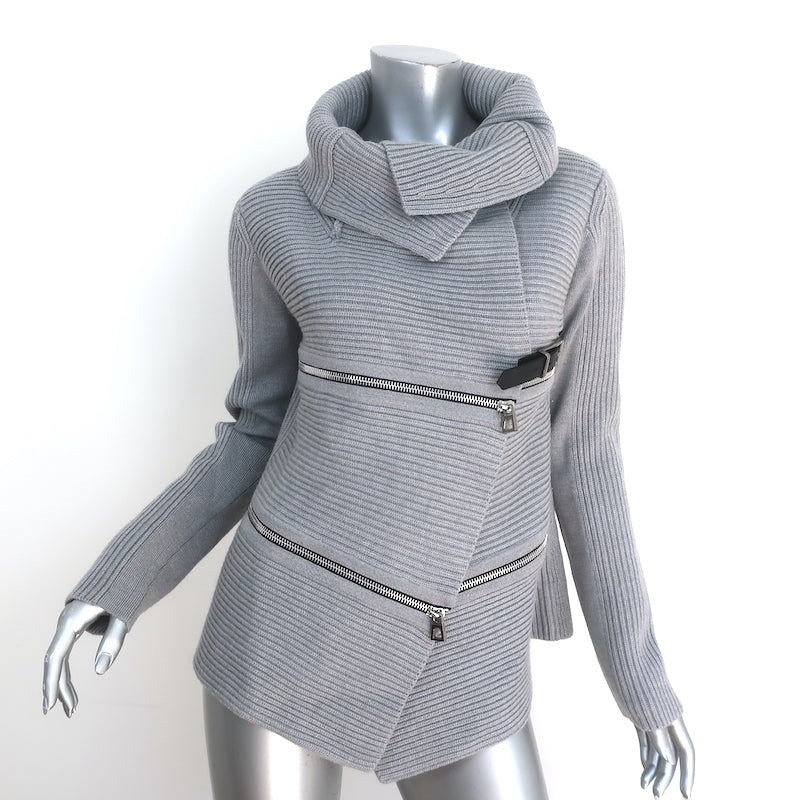 Barbara Bui Zipper Cardigan Gray Ribbed Knit Size Small Buckle Sweater Measurements