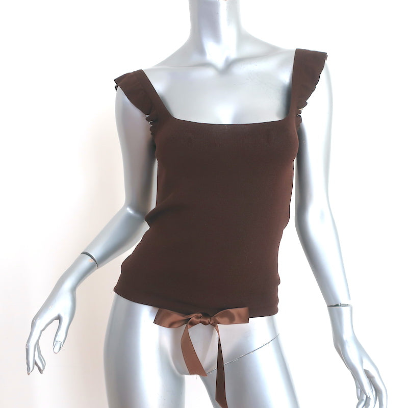 Barneys New York Ruffle Strap Tank Top Brown Ribbed Silk Knit Size Medium