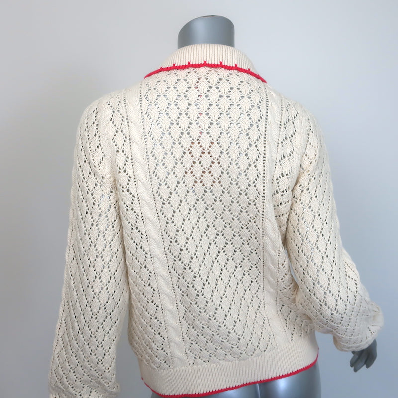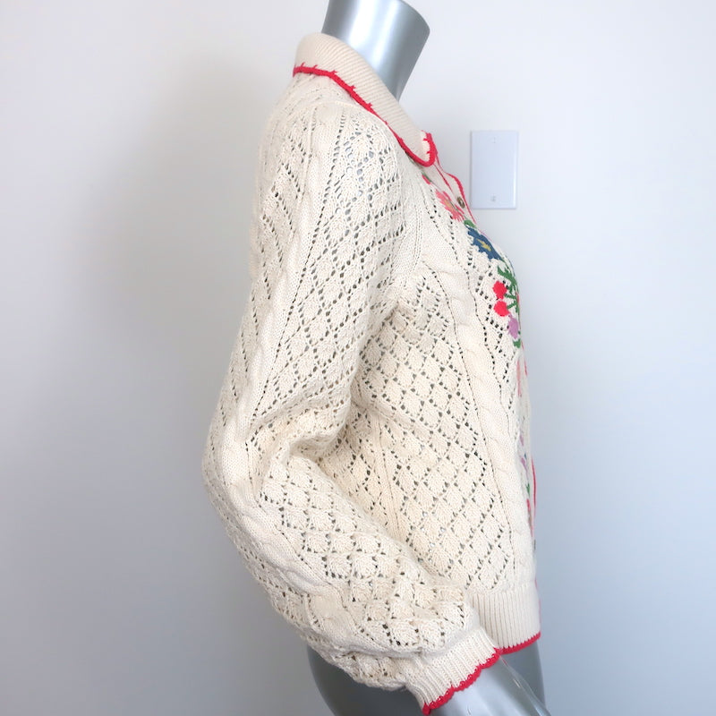 Boden Floral-Embroidered Pointelle Knit Cardigan Cream Cotton Size Small NEW