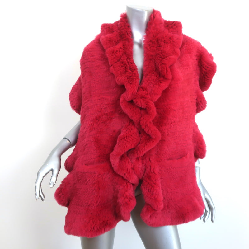 Brioni Ruffled Rabbit Fur Shawl Red Measurements