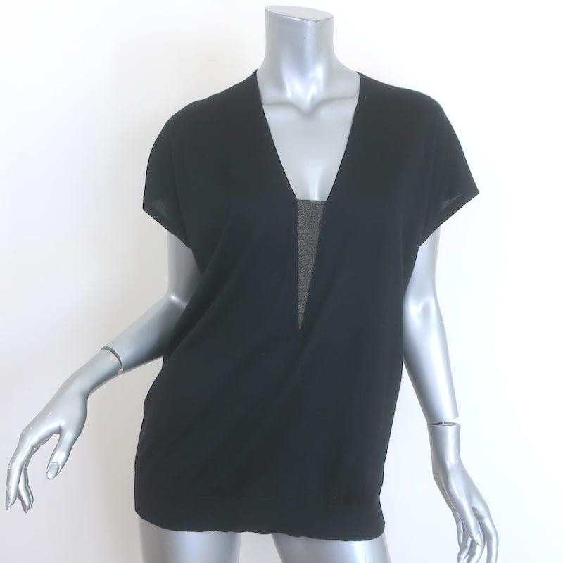 Brunello Cucinelli Cashmere Monili-Insert Short Sleeve Sweater Black Size Medium
