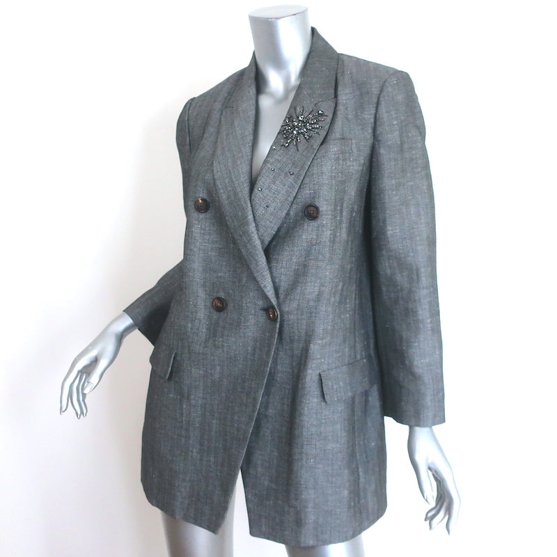 Brunello Cucinelli Crystal-Embellished Double Breasted Blazer Gray Size 42