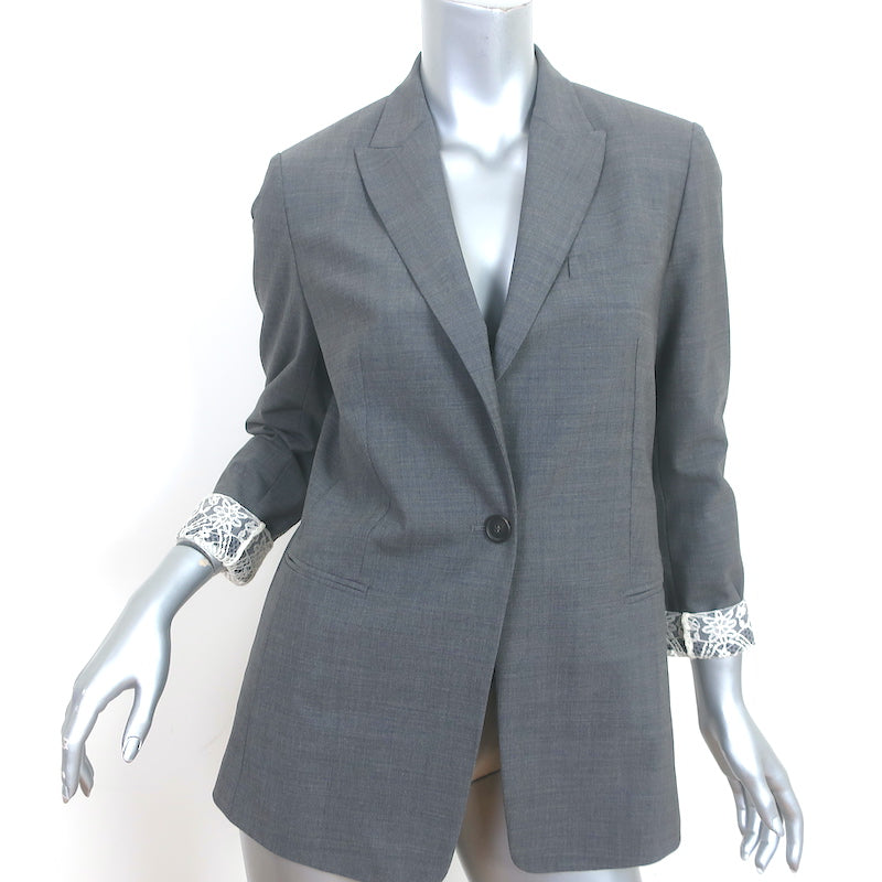Brunello Cucinelli Lace Cuff Blazer Gray Stretch Wool Size 42 One-Button Jacket