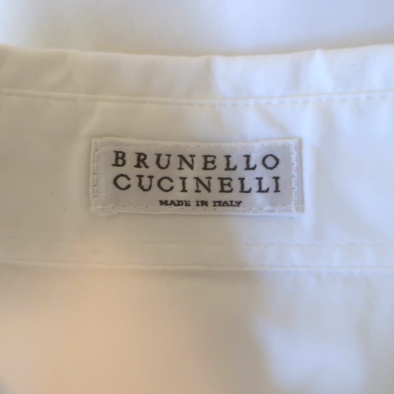 Brunello Cucinelli Monili Roll-Tab Button Down Shirt White Cotton Size Small
