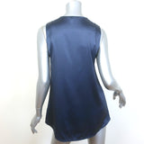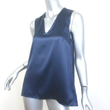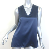Brunello Cucinelli Stretch Silk Satin Tank Top Navy Size Medium V-Neck Blouse