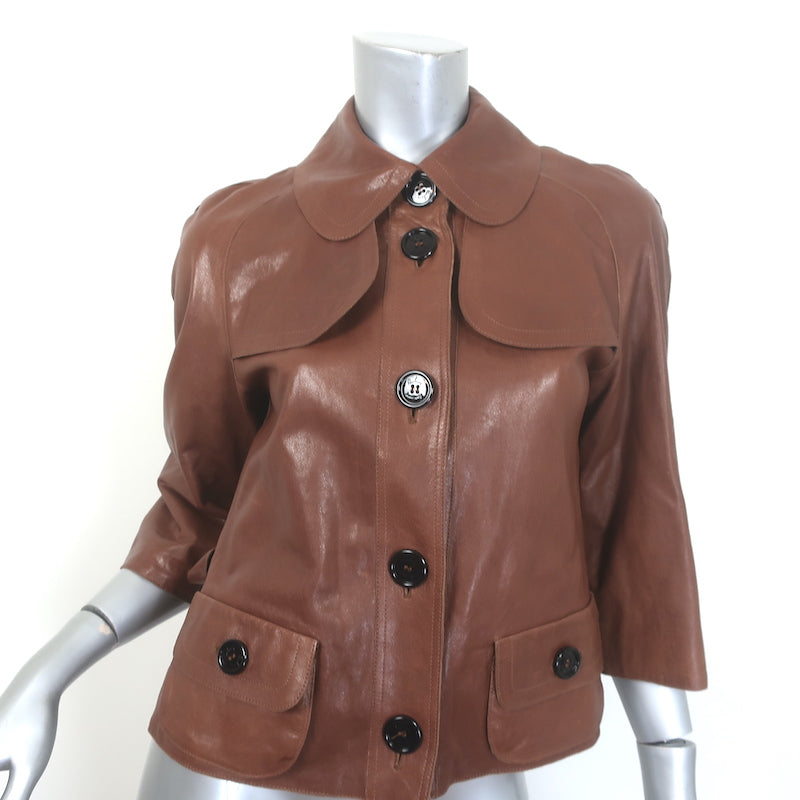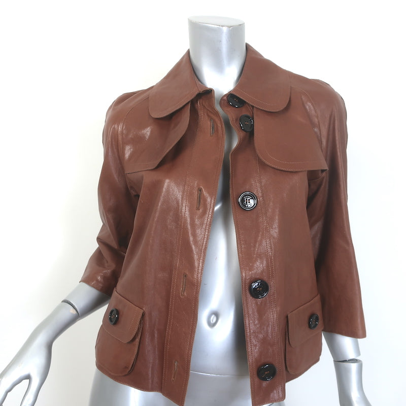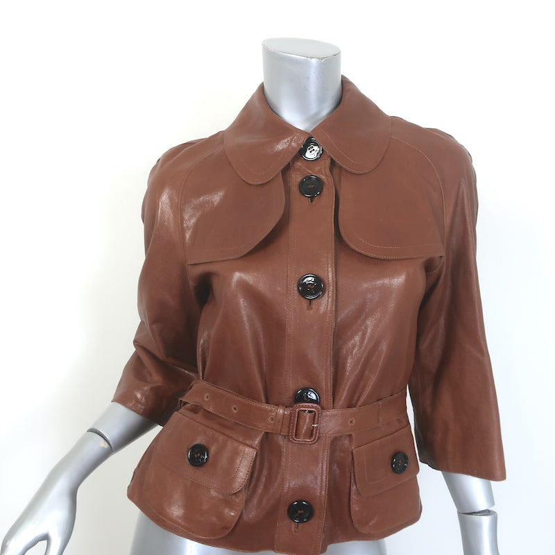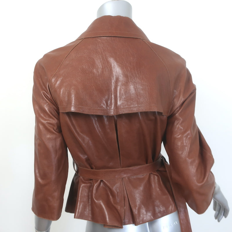 Burberry London Belted Leather Short Trench Jacket Brown Size US 4