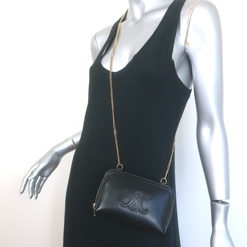 Celine Cuir Triomphe Clutch on Chain Black Leather Crossbody