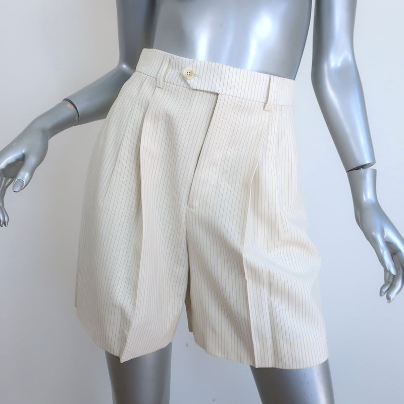 Celine High Waisted Shorts Ivory Pinstriped Wool Size 36