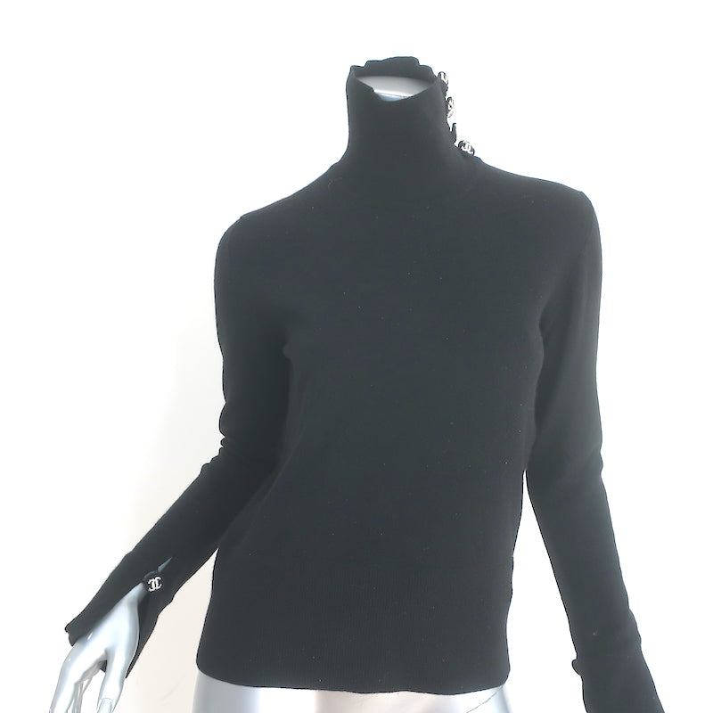 Chanel 02A Cashmere Logo Button Turtleneck Sweater Black Size 42