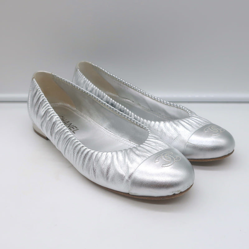 Pre-loved. Scuffs on toes and heels. Wear on tips of toes. Small smudge on interior side of right toe. Comes with dustbag.