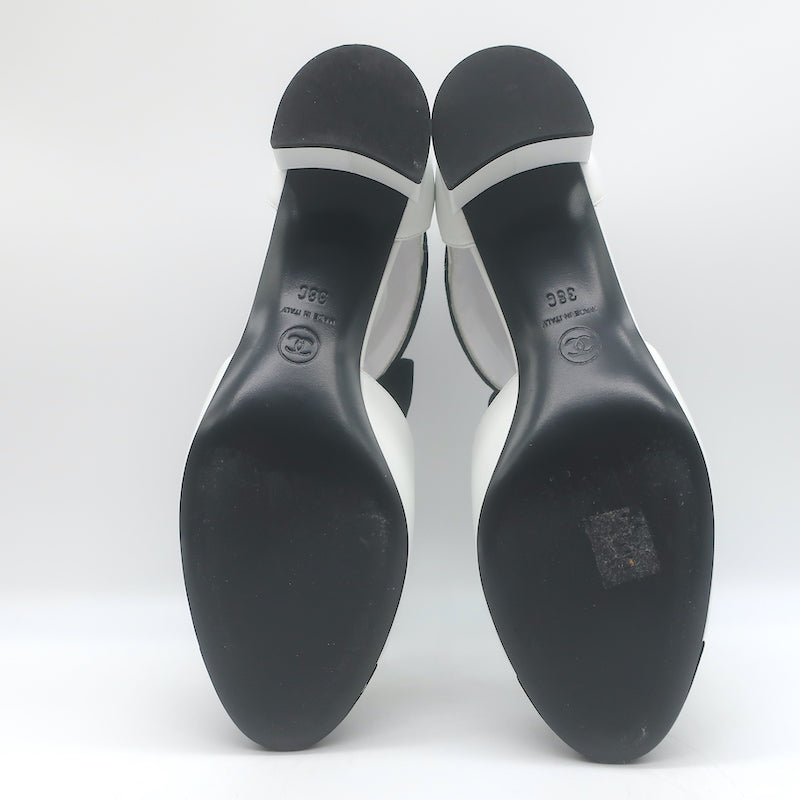 Chanel 06P Bow Cap Toe Pumps Black & White Patent Leather Size 39