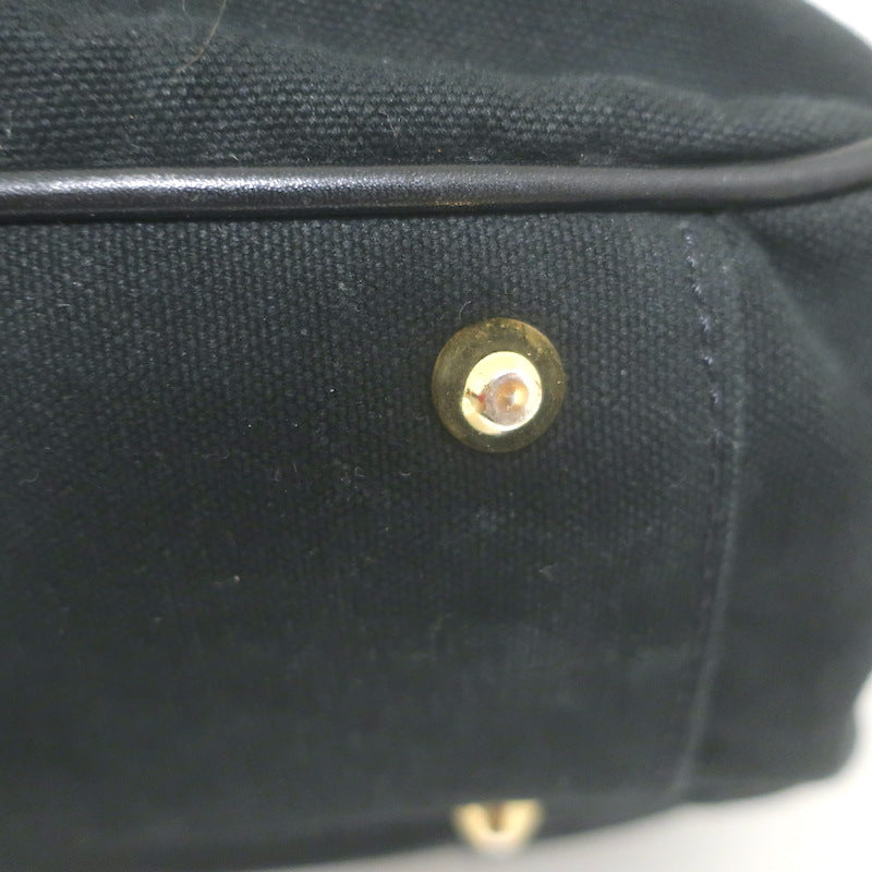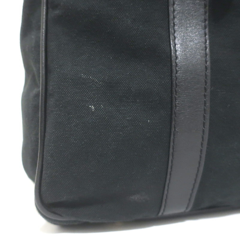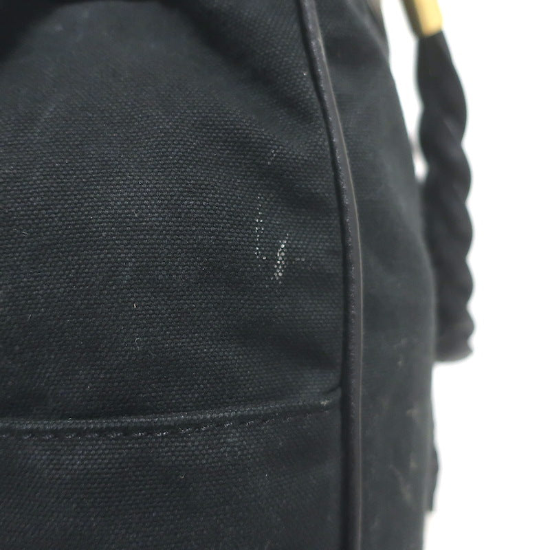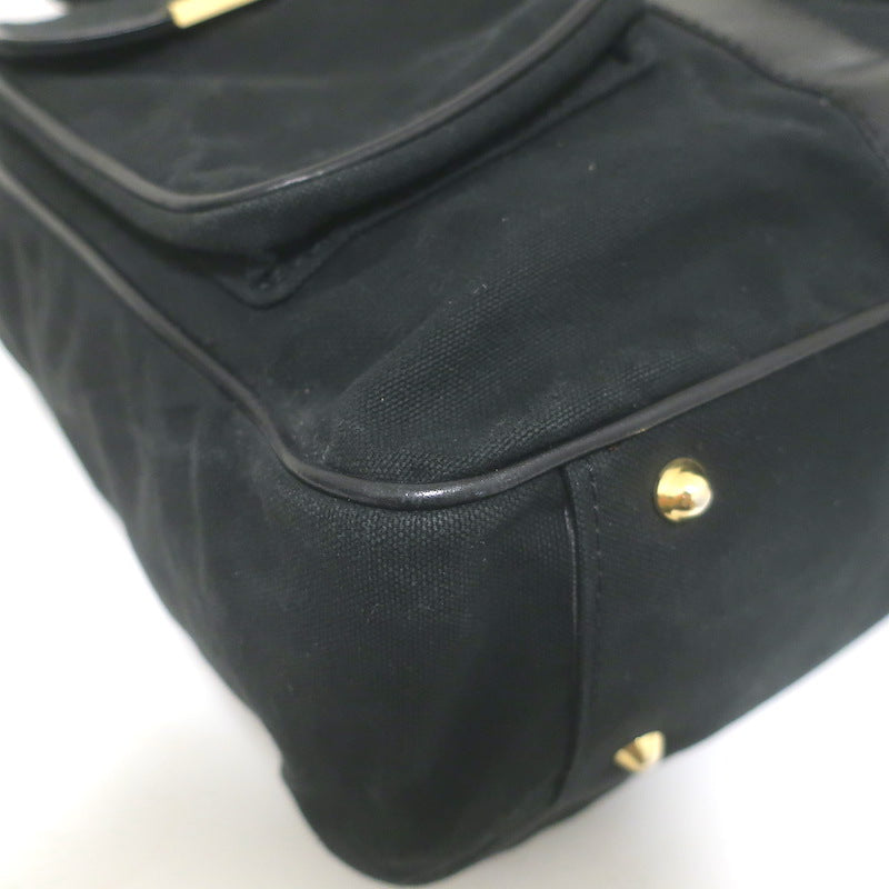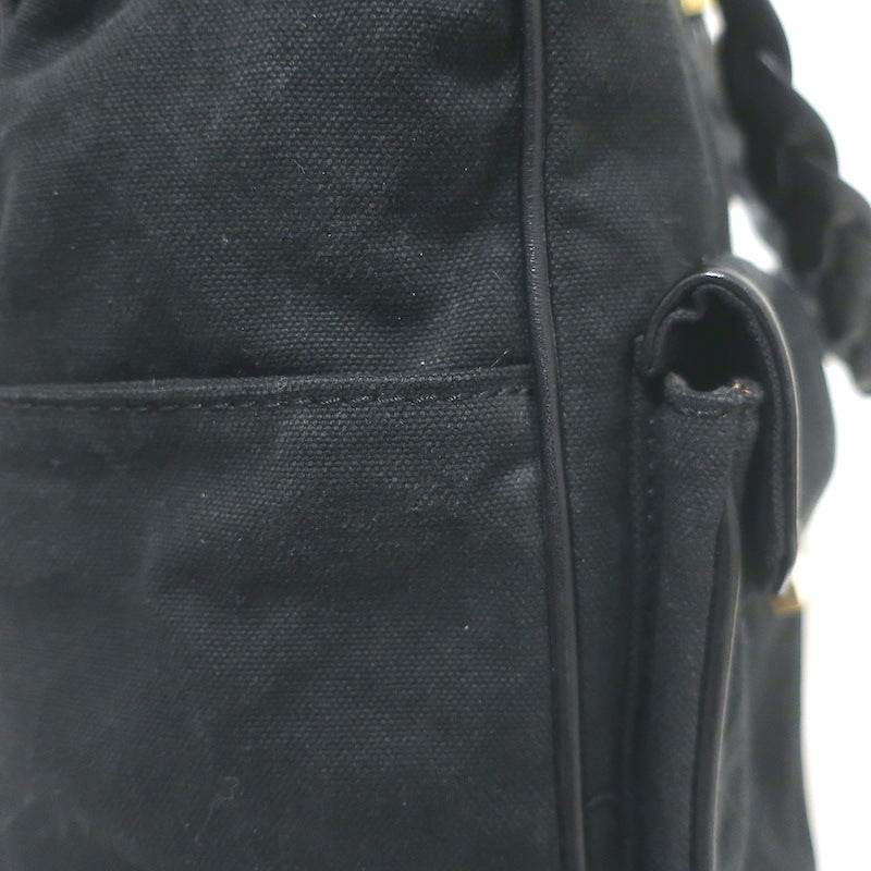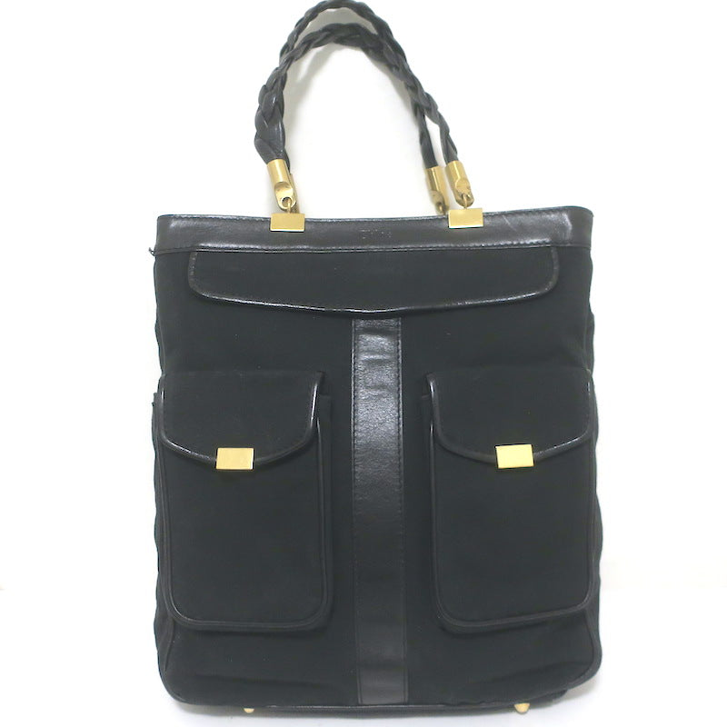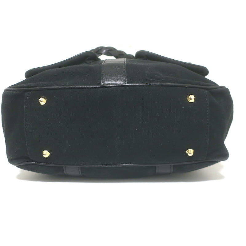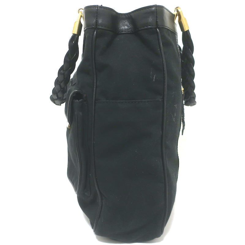 Chloe Braided Strap Front-Pocket Large Tote Black Leather-Trimmed Canvas