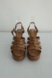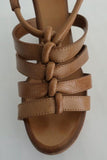 Chloe Platform Wedge Sandals Tan Leather Size 40 Slingback Heel