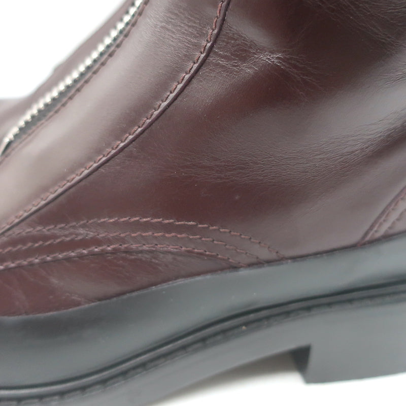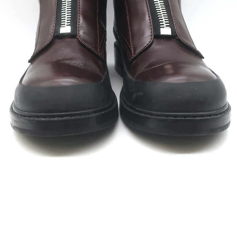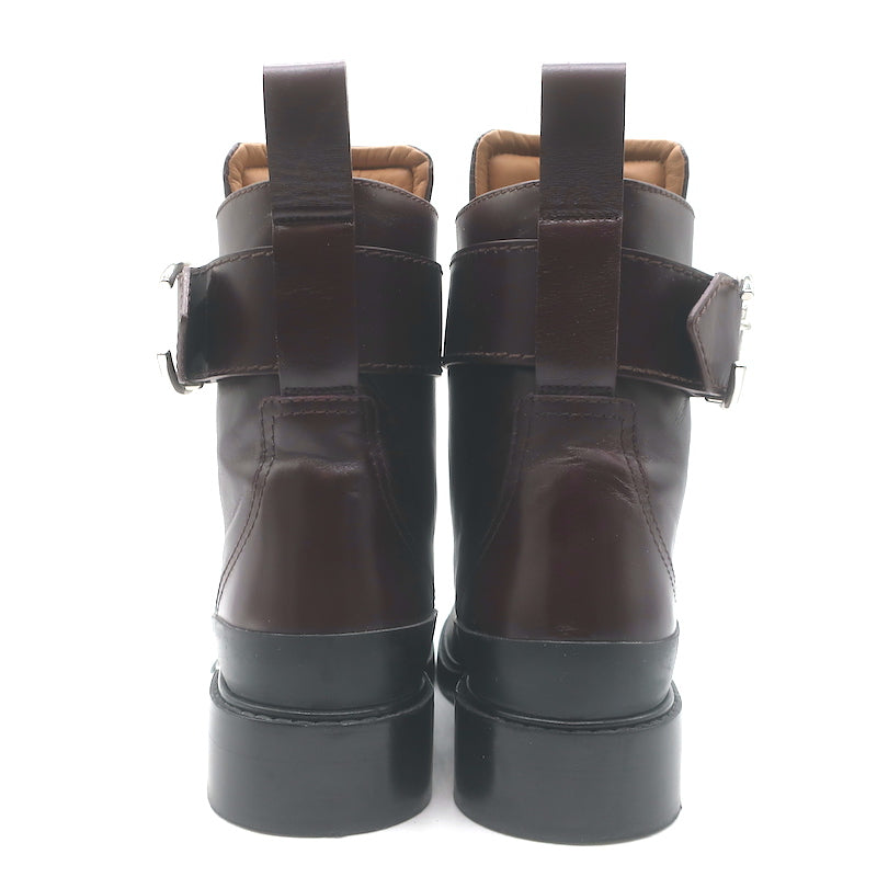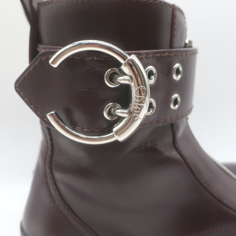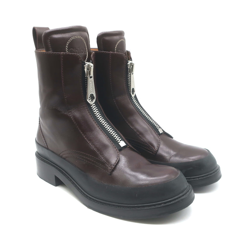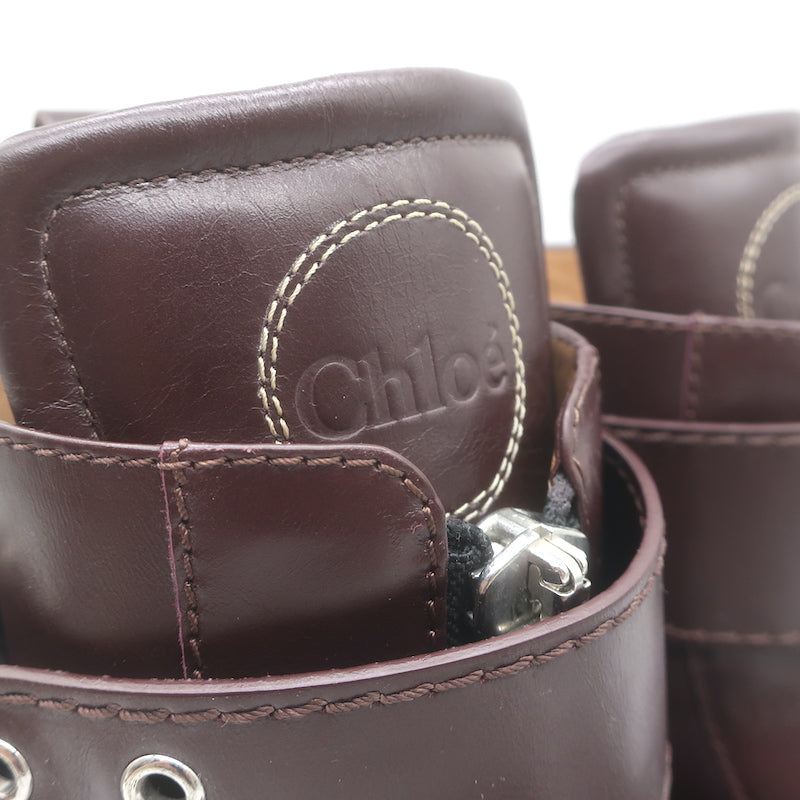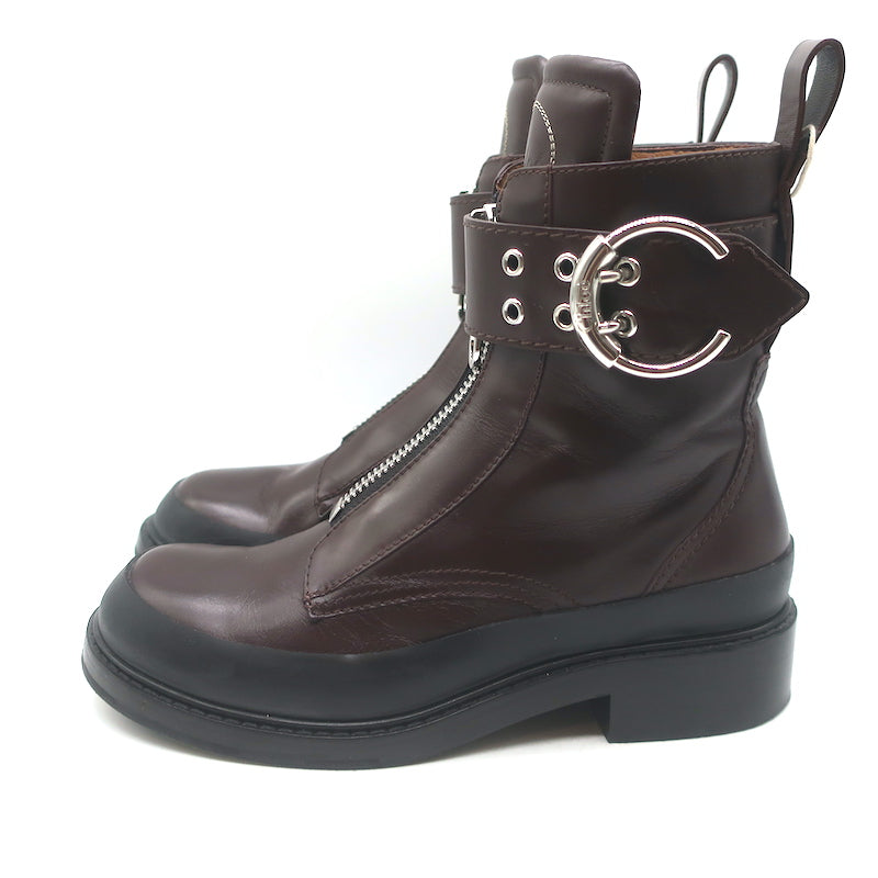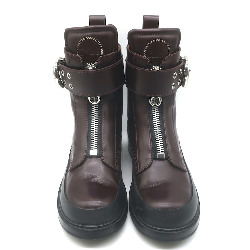 Chloe Roy Zip-Front Belted Combat Boots Dark Brown Leather Size 40.5
