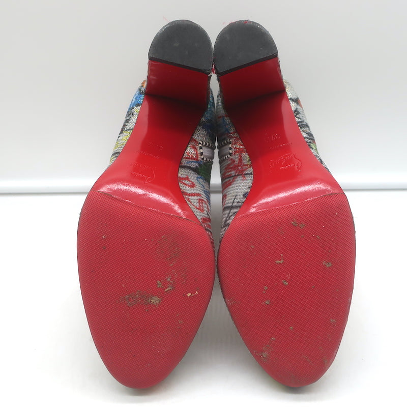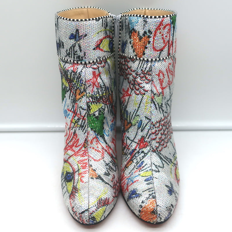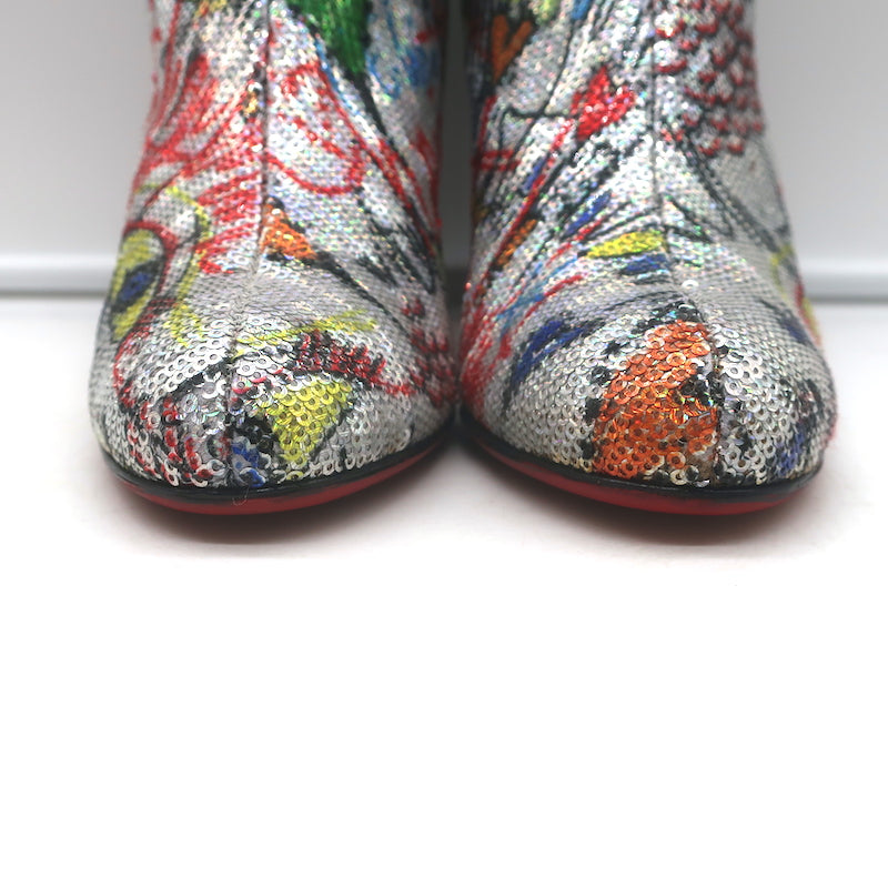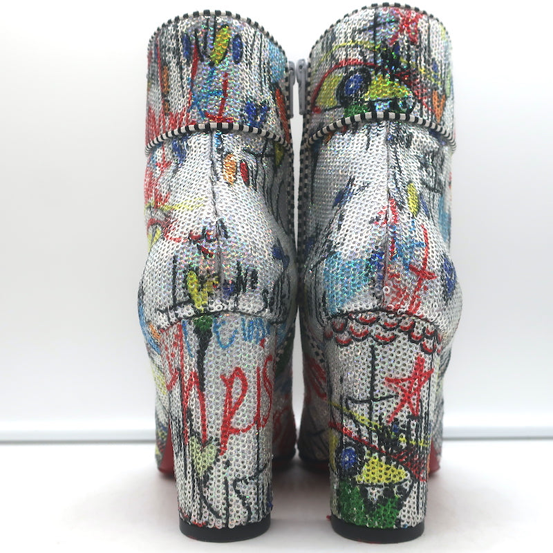 Christian Louboutin Loubitag Sequined Graffitti Ankle Boots Silver Size 37.5