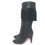 These pre-loved Christian Louboutin Majung fringe boots in black leather (EU 35.5; fits like a US 5) bring instantly recognizable Louboutin flair to your wardrobe with playful fringe and refined leatherwork.