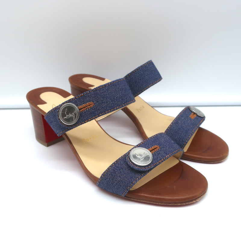 Christian Louboutin Sandenim Slide Sandals Size 37.5 Open Toe Heels