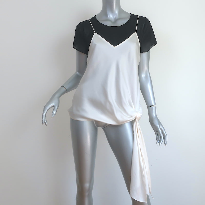 Cinq a Sept Layered Short Sleeve Top Black Chiffon & Ivory Silk Size Small