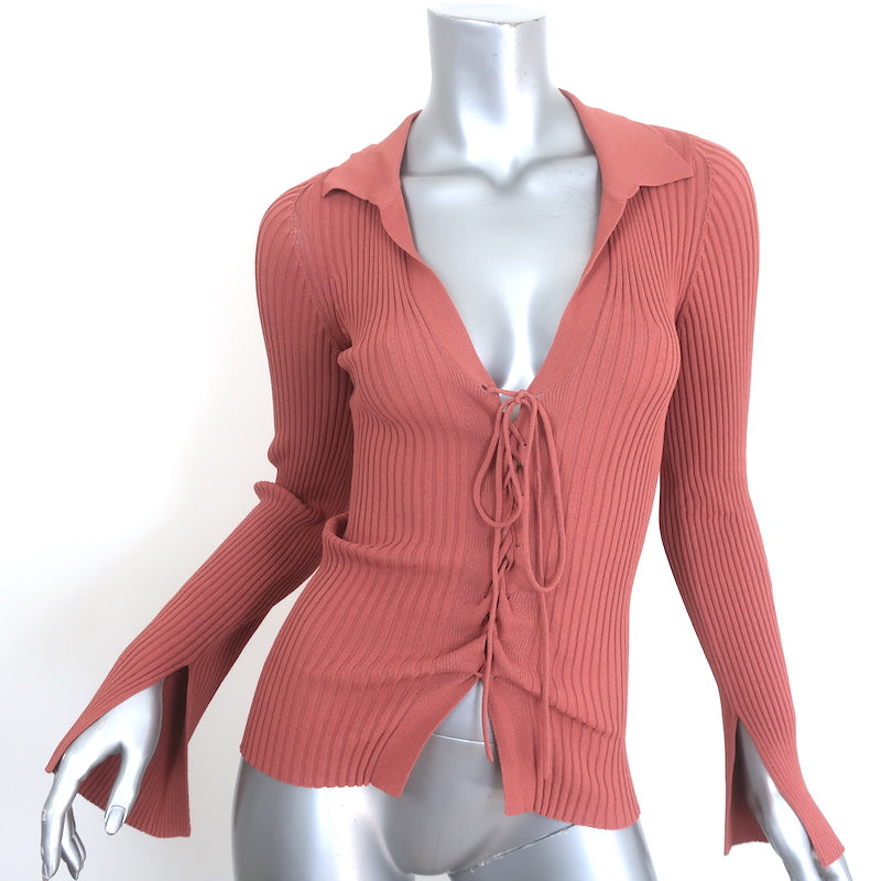 Cult Gaia Faye Lace-Up Cardigan Top Rose Ribbed Knit Size Small Measurements