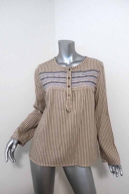 Current/Elliott Retreat Henley Top Yellow/Gray Embroidered Striped Cotton Size 1 Measurements