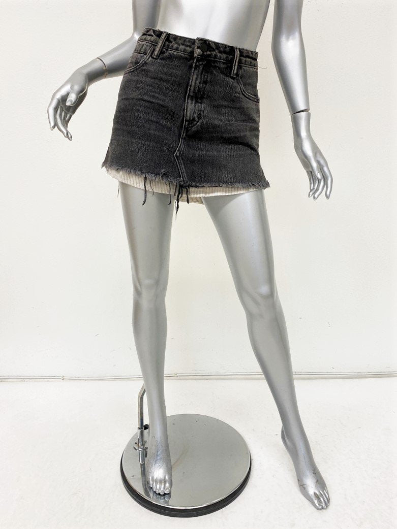 Denim x Alexander Wang High Rise Denim Skirt with Shirttail Hem Grey Size 25 -